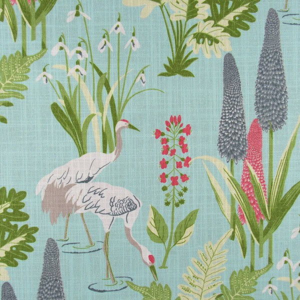 Featuring serene cranes gracefully positioned among vibrant botanical elements, this design brings movement and personality to any room. Whether you're refreshing upholstery, hanging new curtains, or creating custom pillows, Poise delivers visual intrigue without taking itself too seriously. The perfect blend of natural inspiration and lighthearted charm, this fabric invites your space to embrace its wild side while maintaining timeless elegance